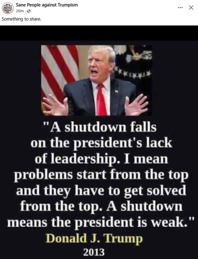 Announced by the government, that 1000's are going to be laid off - because the officials can't handle the truth about the Epstein pedo ring!? If he's not in it - quit stalling to the detriment of the people you claimed would be so much better under your 2nd term - their mess clean up on isle WH