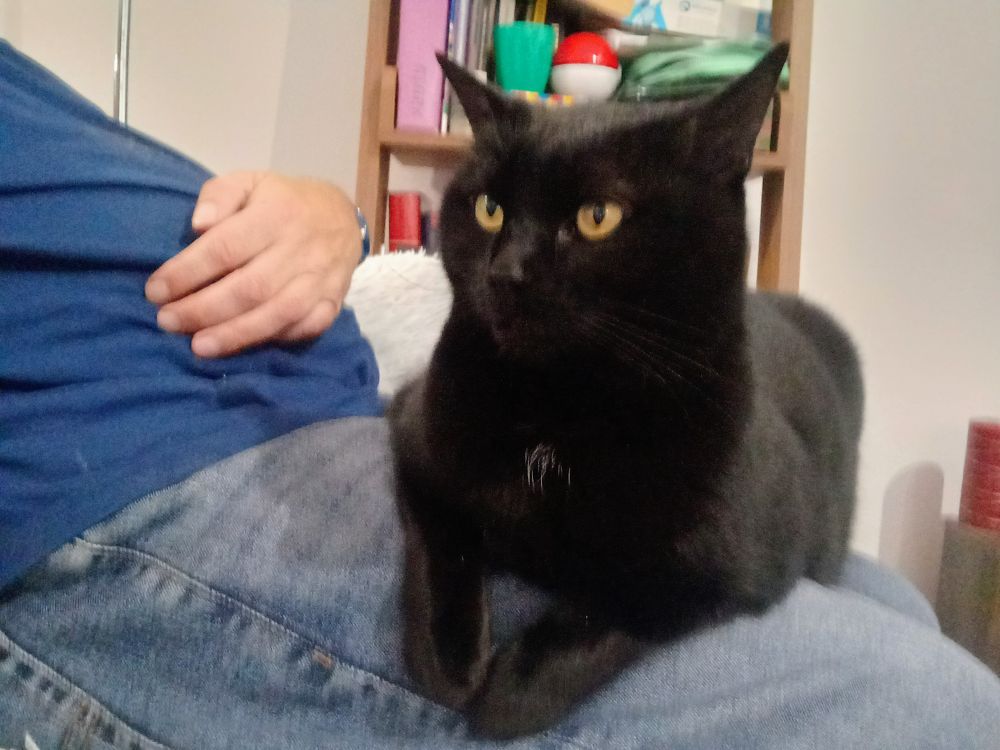 So it's Halloween, and a black cat is sitting on my lap!