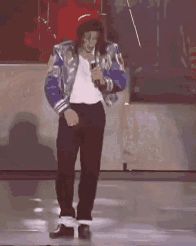 a man in a blue jacket and white shirt is dancing