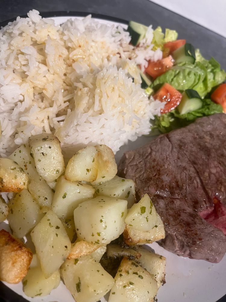 Tonight’s dinner pre gym! 5 eggs 1 beef burger topped with cheese 1 steak topped with parmigiana cheese and 100g of chicken cooked in salt and pepper 💪🏼