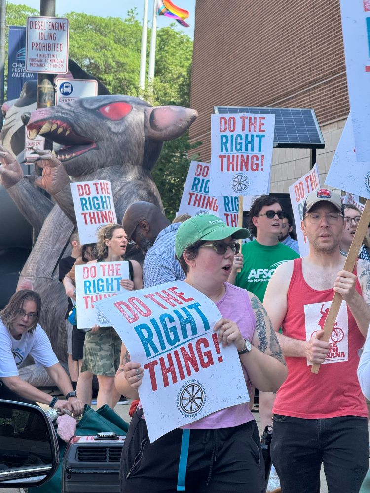 Scabby the Rat has a message for Chicago History Museum management: Do the right thing.