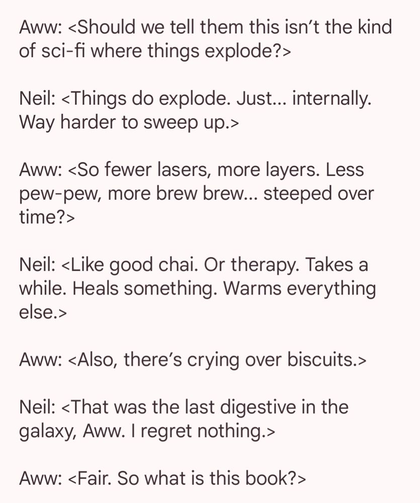 #AmQuerying #hopepunk debut SPACE AND SPICE AND EVERYTHING PRECISE: On a planet where feelings are banned, a therapist & a fanfic-trained AI start group therapy for aliens.