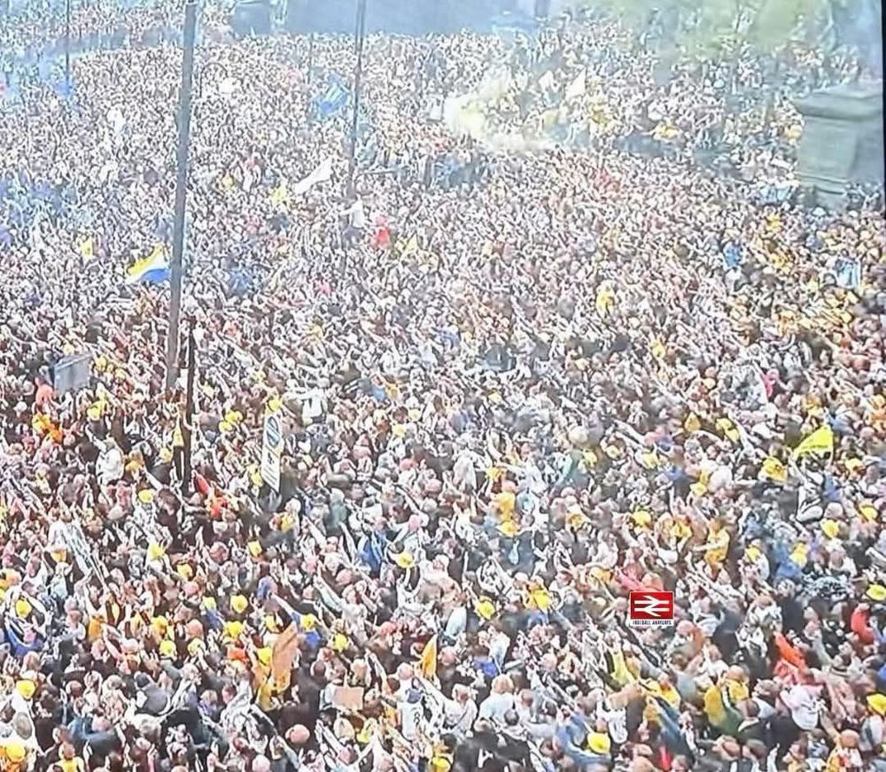 Leeds fans on the pitch