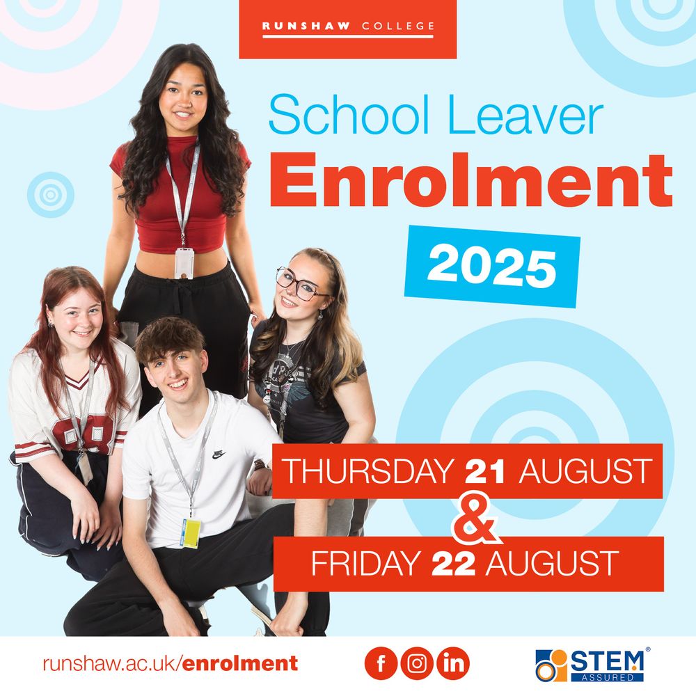 School leavers – start your application to join us here at Runshaw next September 2026: