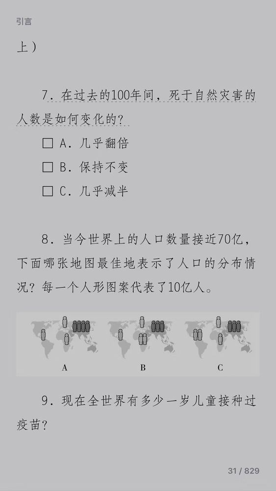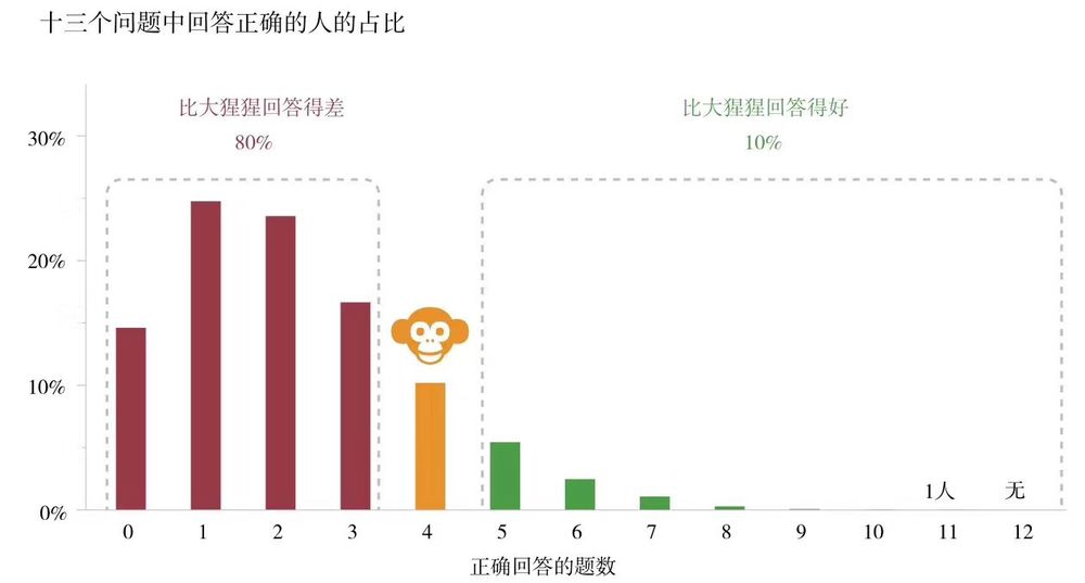 书开篇提出13个问题,有兴趣的朋友可以做一做,答案我迟点公布。如果最终成绩劣于大猩猩的,我建议可以读一下这本《事实》。如果成绩优于大猩猩的,那恭喜你,你比大猩猩强。