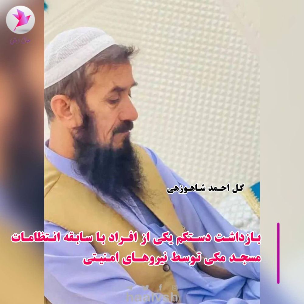 ساعتی پیش امروز ۱۳ خرداد ۱۴۰۲، یکی از اعضای قدیمی و با سابقه انتظامات مسجد مکی با هویت گلاحمد شاهوزهی توسط نیروهای امنیتی بازداشت و به مکان نامعلومی انتقال شده است.