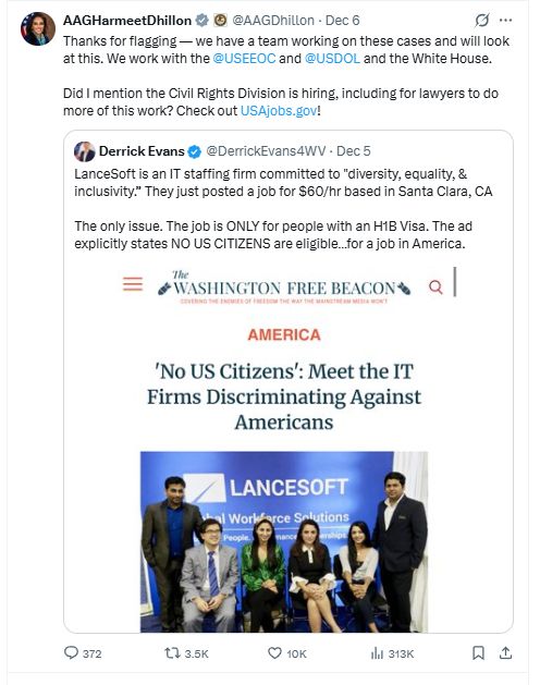 Harmeet Dhillon and the Civil Rights division of the DOJ will end this virulent, disgusting racism across the nation.