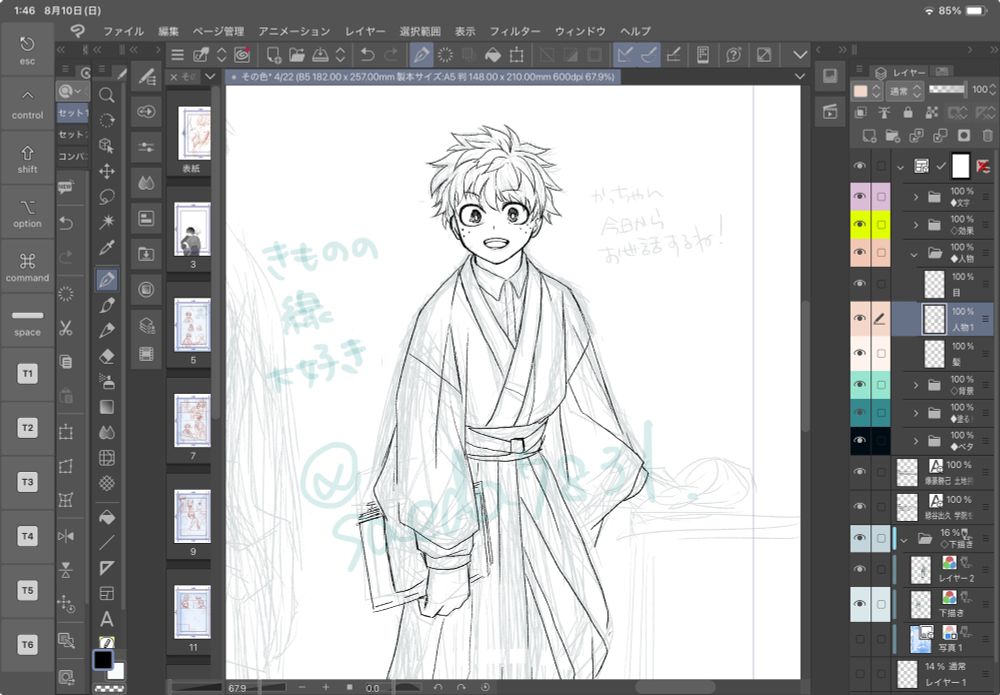 🍁:ラフ、勝線画、彩色sae、デ線画カワダさん