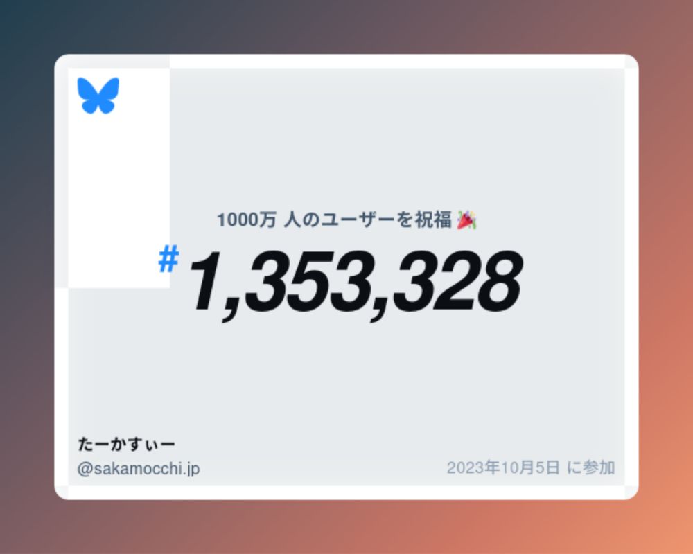 Bluesky のユーザー数は現在 1,000 万人を超えており、私は #1,353,328 番目でした。