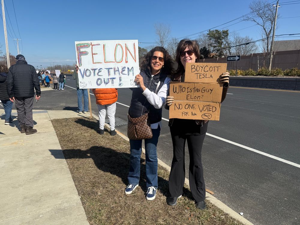 Over 500 showed up at Tesla in Smithtown LI NY-perfect protest weather!! @maddow.msnbc.com