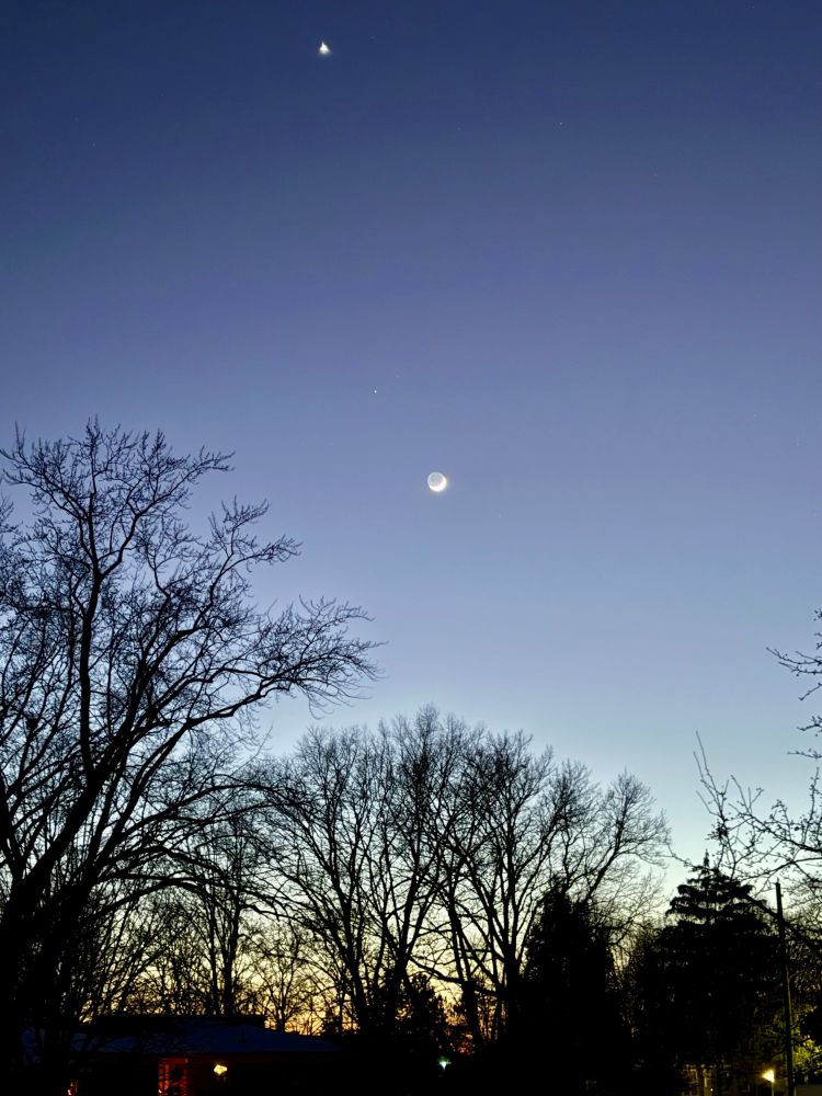 Nice clear night tonight here on the lakeshore to see a new Moon, Saturn and Venus together.