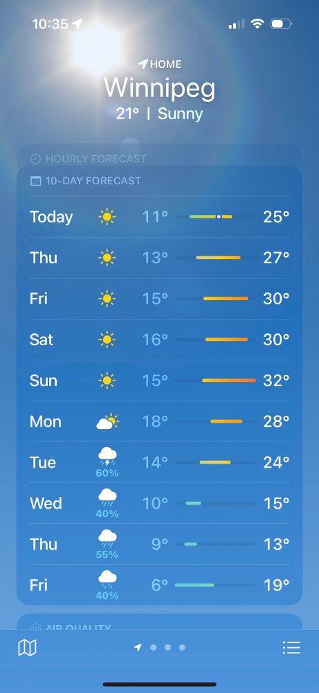 What is going on with the weather here in Winnipeg. 36°C today and see that little snowflake at the bottom of the screen capture?
