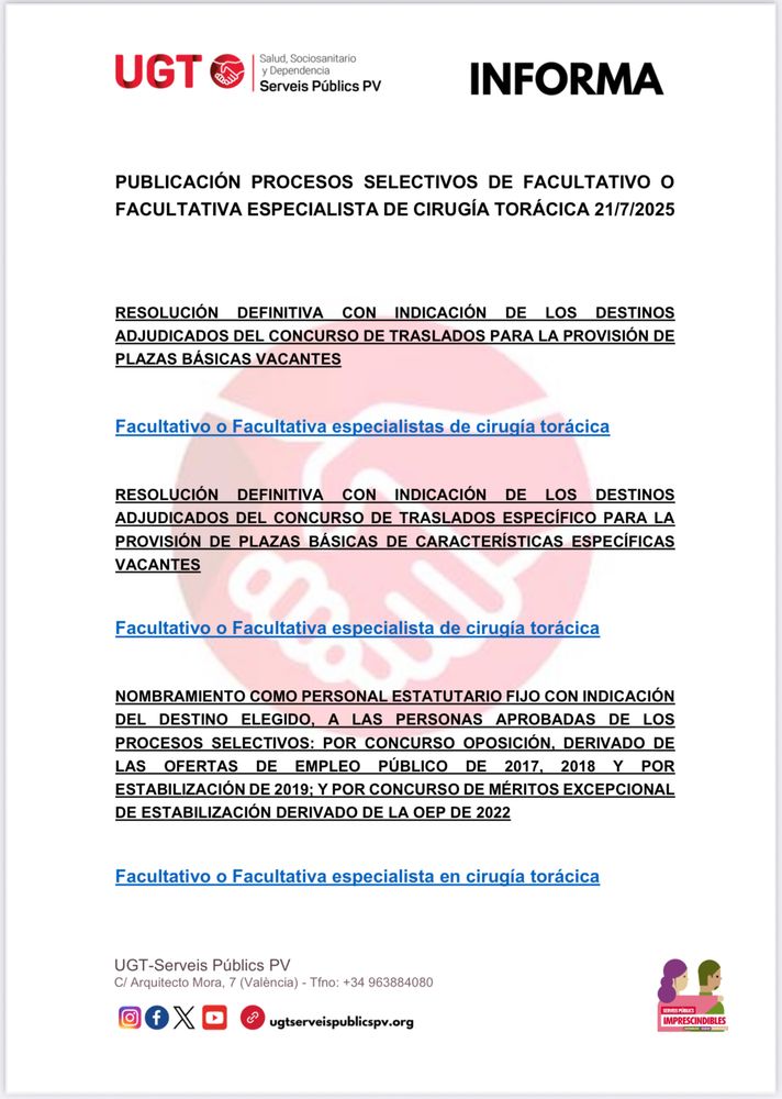 #UGTContigo #SanidadValenciana #ServiciosPúblicos #Valencia
