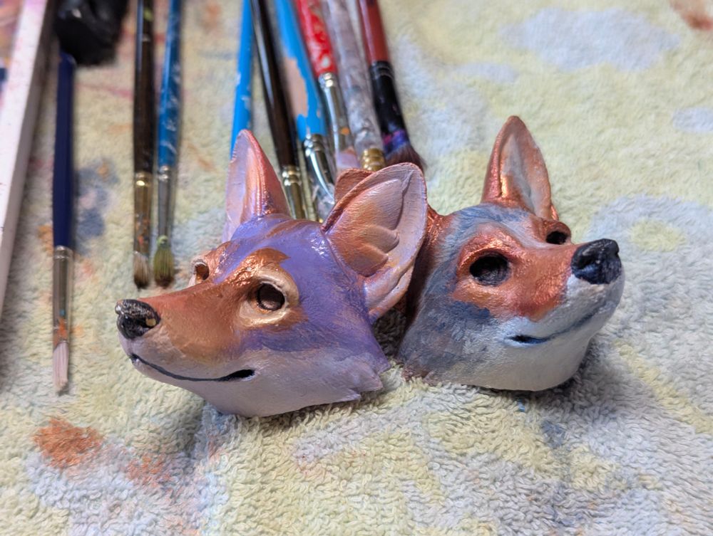 Working on finishing up a new mask collab with @ericstrother.bsky.social for Anthrocon. I have to finish the painting work tonight for it to be ready in time, but things are looking good!