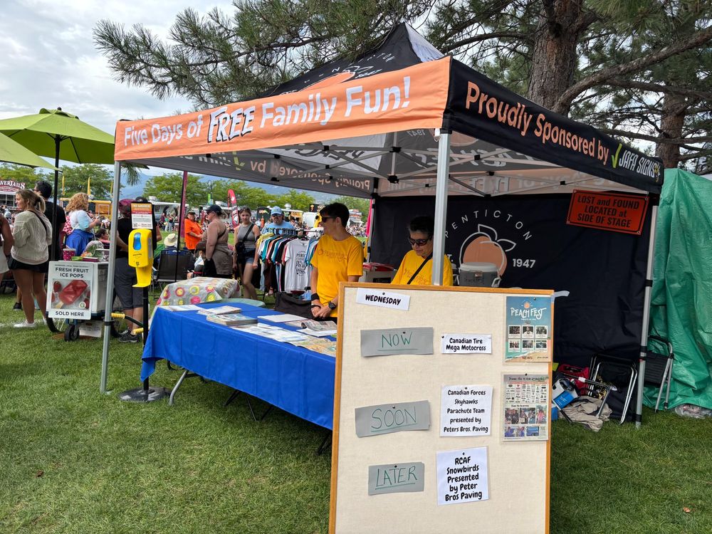 We're excited to be at the Penticton Peach Festival this weekend! If you're in the area, stop by and come, visit our tent! Plus, if you forget your SPF, we've got you covered with our sunscreen dispenser.