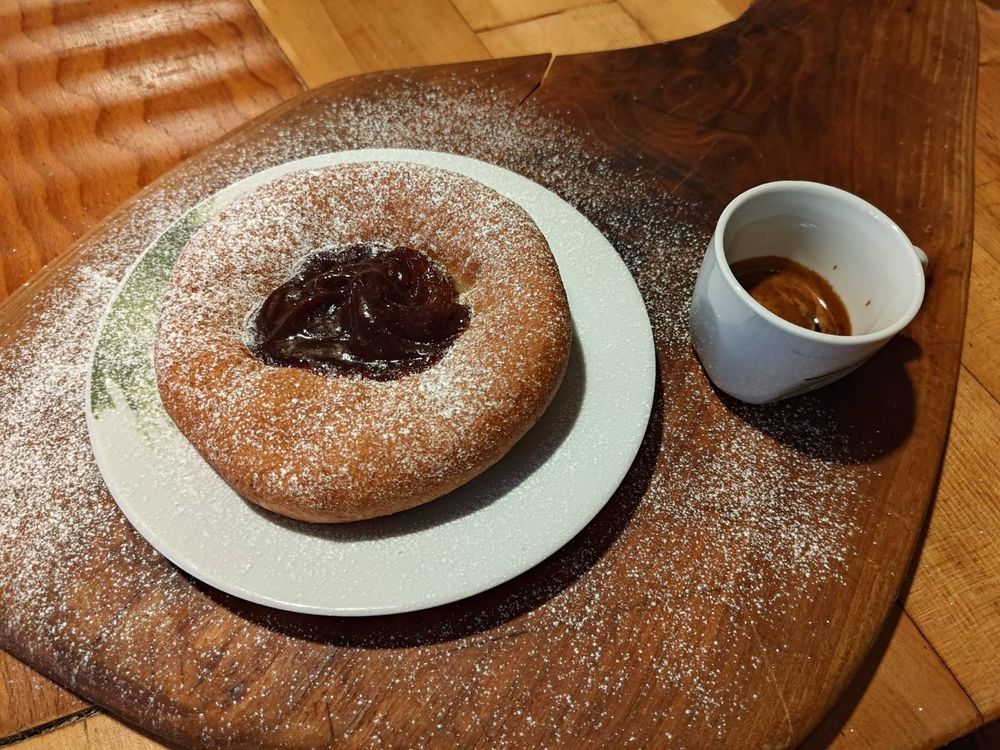 500g Wheat Flower, 260g Oatmilk, 40g plantbast Fat, 20g Yeast, 10g Salt, 20g Rum, 40g Suger, pinch Vanille and Lemon => 10min slow mixing =>3min fast, 4 hours (4°C) Resting. Oil 170°C