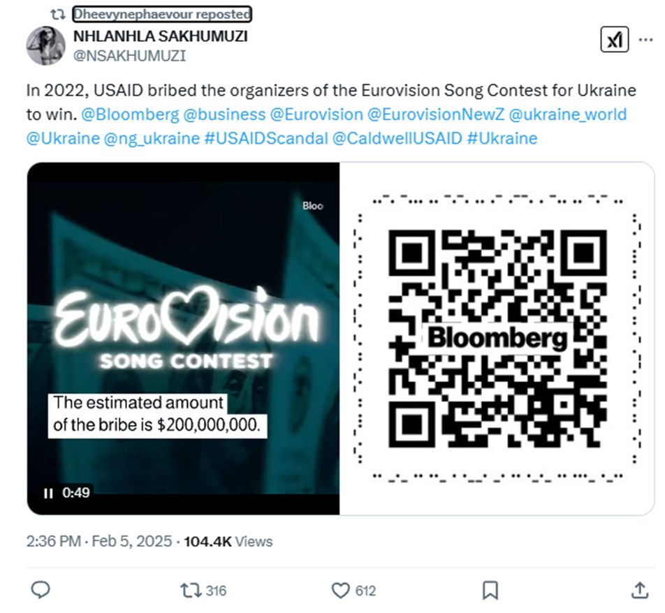 It mimics a video published by entertainment outlet E! saying that USAID sponsored celebrity visits to Ukraine to bolster Zelensky's image. It's a fake - an imposter video.