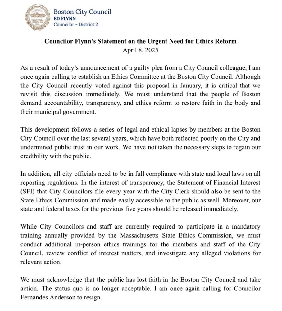 Cites Councilor Fernandes Anderson guilty plea and says, “I am once again calling for Councilor Fernandes Anderson to resign.” @nbcboston.com