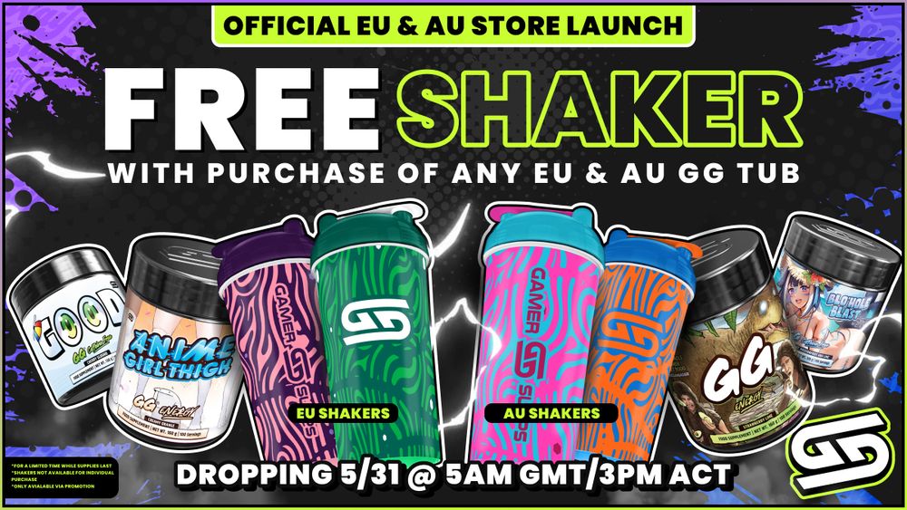 Starting Saturday, May 31, 2025 1:00 AM, Gamer Supps is officially launching EU & AU Stores! Shipping fees no more! Free shaker with every tub purchased for a limited time, while supplies last. Feel free to use the code "SeaTactics" when making a purchase!