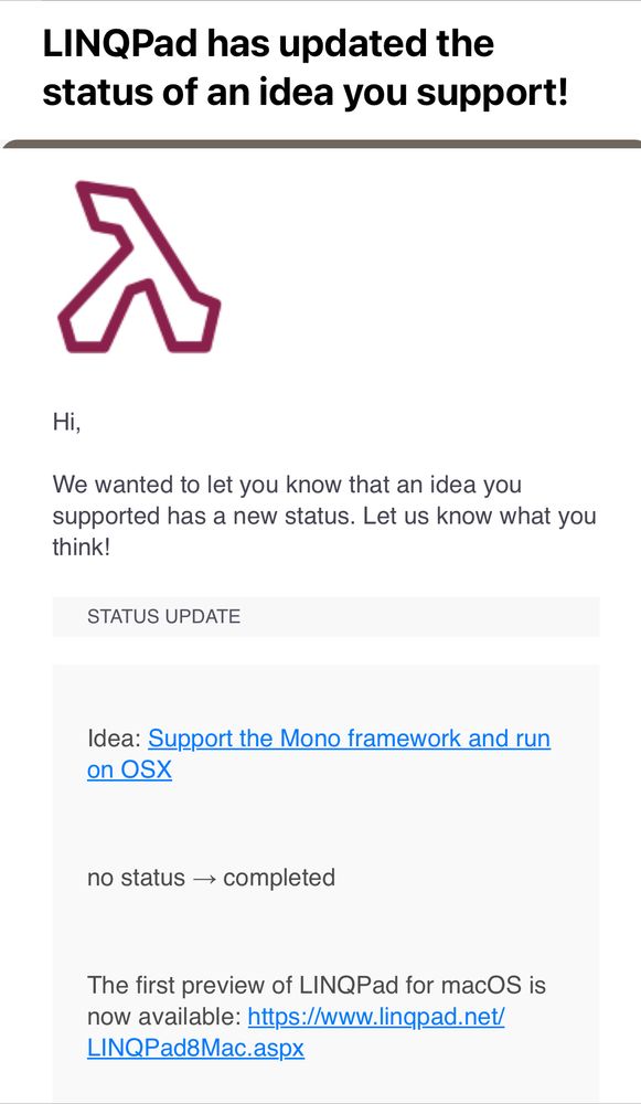 This morning in my inbox. Couldn't ne more excited to use LinqPad again! #linqpad