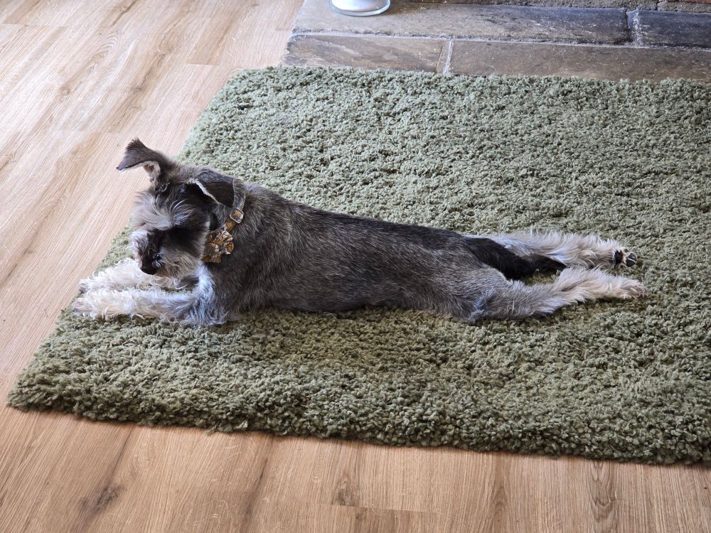 Matilda, recovering well from her bad back, is extremely hairy, having missed out on last month's haircut (which pleased her greatly)... now feeling the heat a bit! 🥰