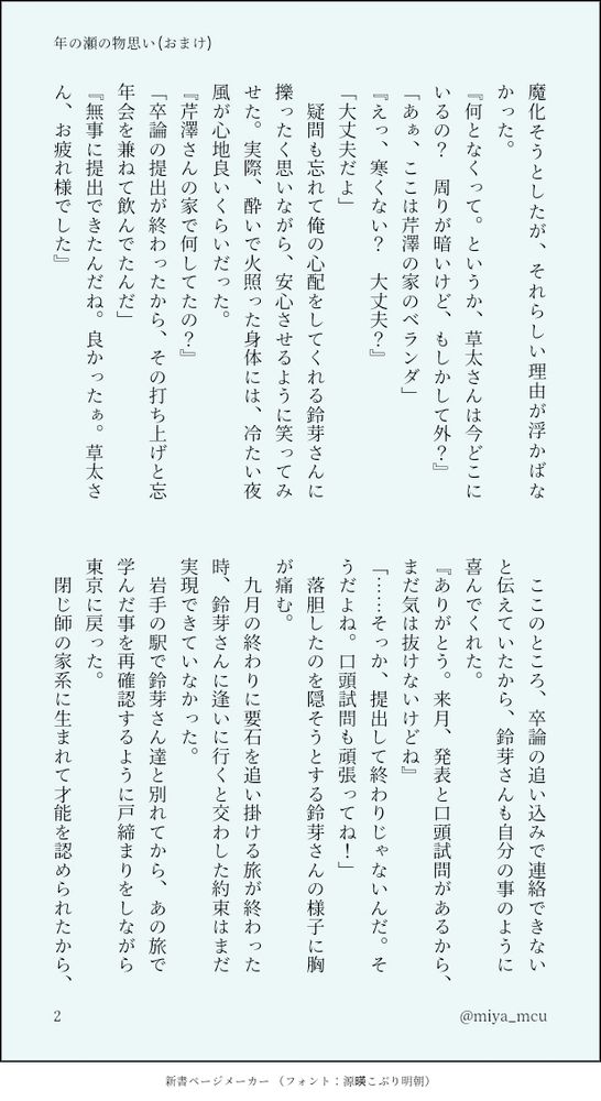 2月の再会前のこのぐらいの時期、鈴ちゃんから言われたある一言を気にしている草さんの話です。