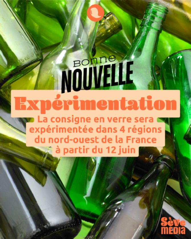 Dès le 12 juin, un système de consigne pour réemploi des bouteilles en verre sera testé à grande échelle dans 4 régions : Pays de la Loire, Bretagne, Normandie et Hauts-de-France.