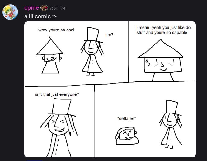 in all seriousness though i'm so glad you got to sit in on so many runs and hang out, it meant a lot to us! thank you and the whole dev team for making and supporting such an incredible game