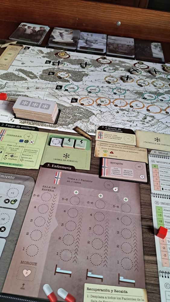 Rendición incondicional en el turno 8, en "La fortaleza de Hegra" @saltandpeppergames.bsky.social Has de prepararte bien para el asedio. Y en esa preparación has de desarrollar varias facetas. Suministros y excavar nieve, son básicos. Los eventos son duros por norma. Todo un desafío, muy bueno