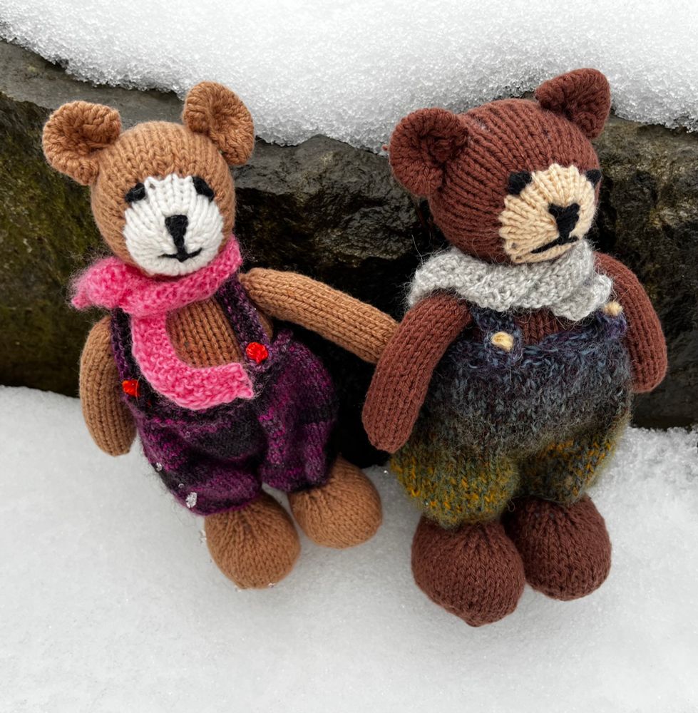 My knit bears after the snow. Enjoy. It looks like they are going somewhere.