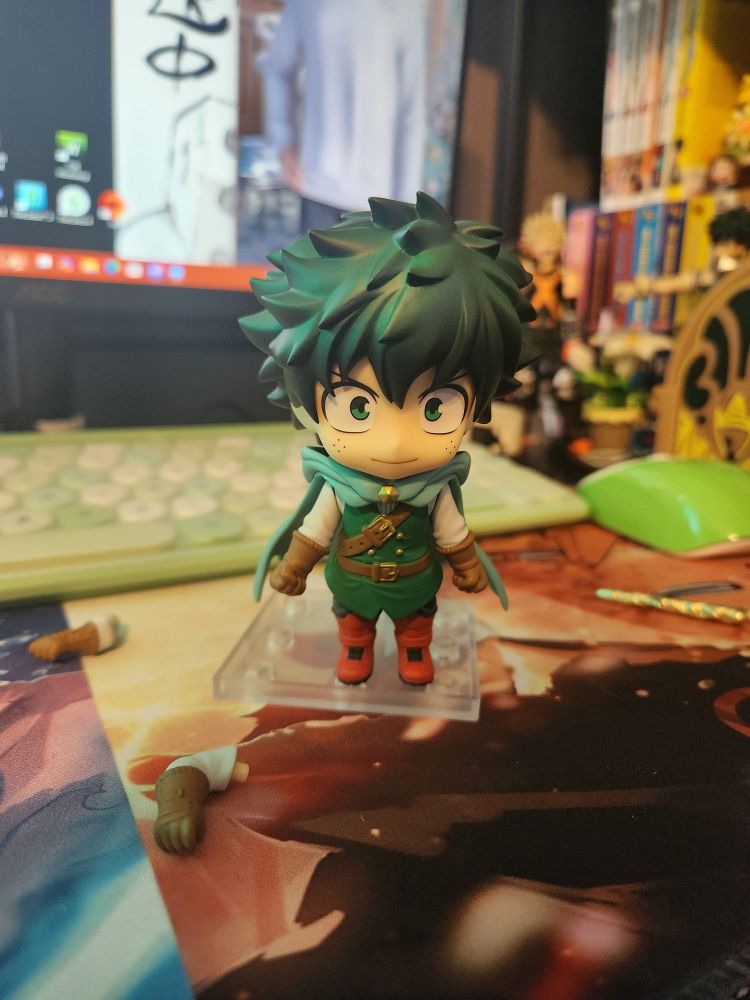 After he defeats AFO he raises his fist in a mimic of All Might's victory pose and continues to cheer on Izuku