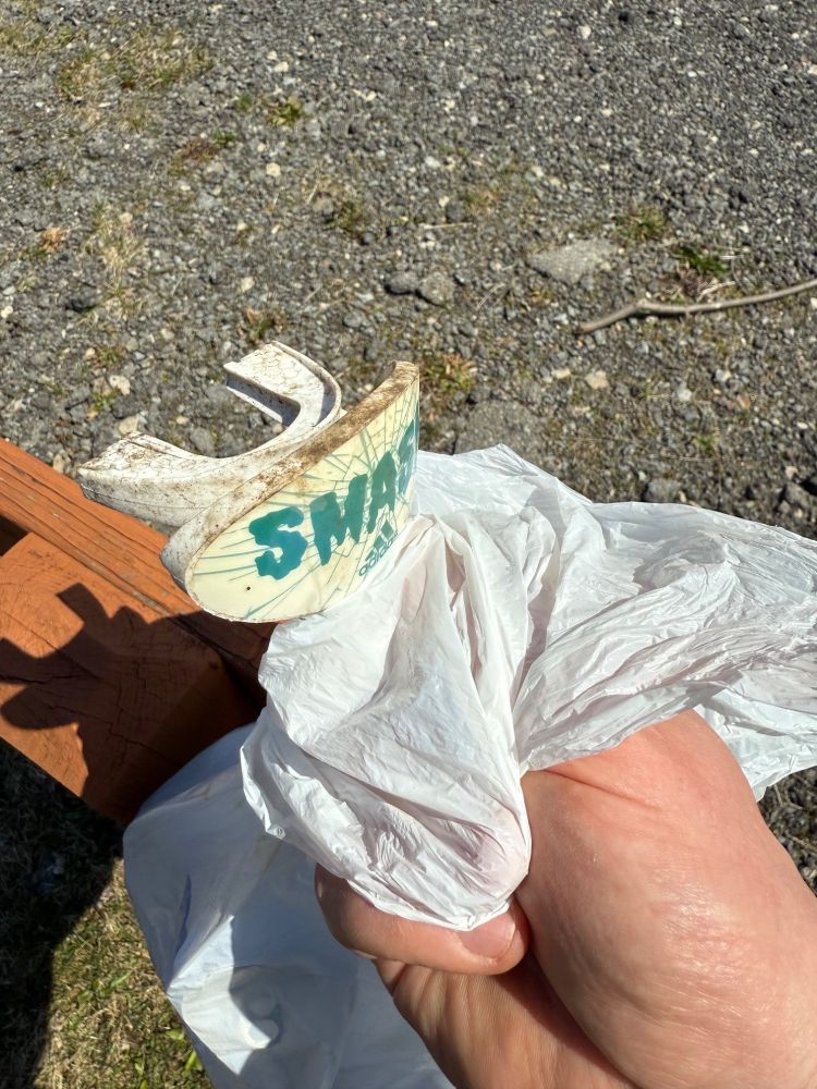 The strangest piece of trash I've found so far during Trash Panda Earth Day Bingo. A (heavily) used mouthguard.