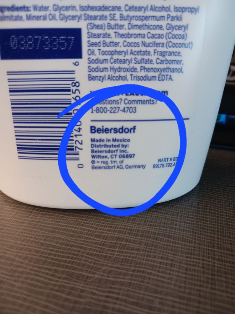 Here is my Nivea hand lotion. A product of Germany, Made in Mexico, distributed by a plant in Connecticut USA.
