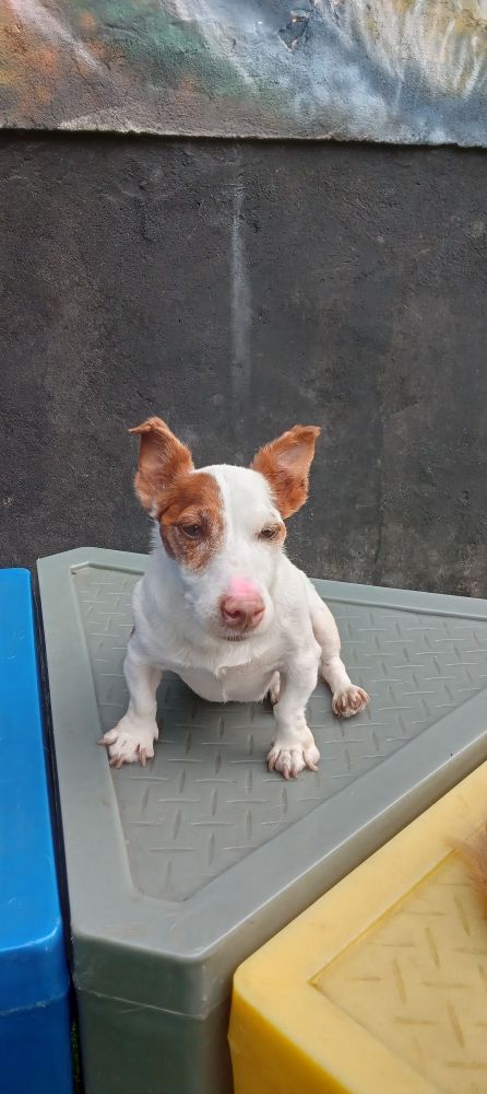 cachorro comicamente grande numa posição engraçada