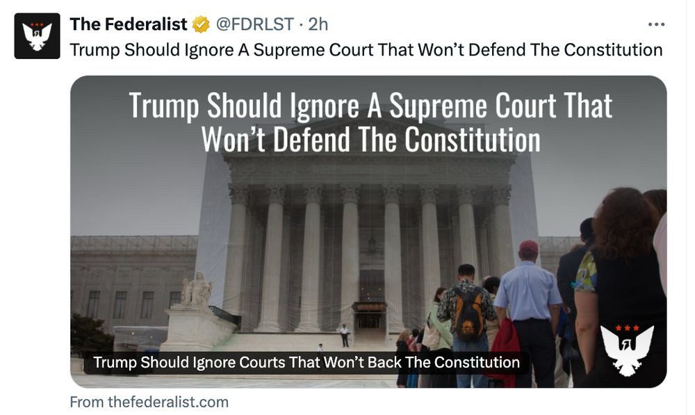 Ignoring SCOTUS ruling is not merely a “constitutional crisis”- it’s the end of a constitutional order.