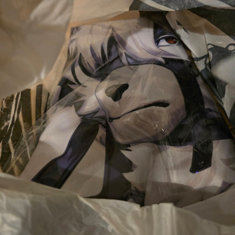 Finally was able to pick it up as I had to leave confuror early, I still cannot use it but I absolutely love it, thanks to @amonsyd.bsky.social for this magnificent bodypillow