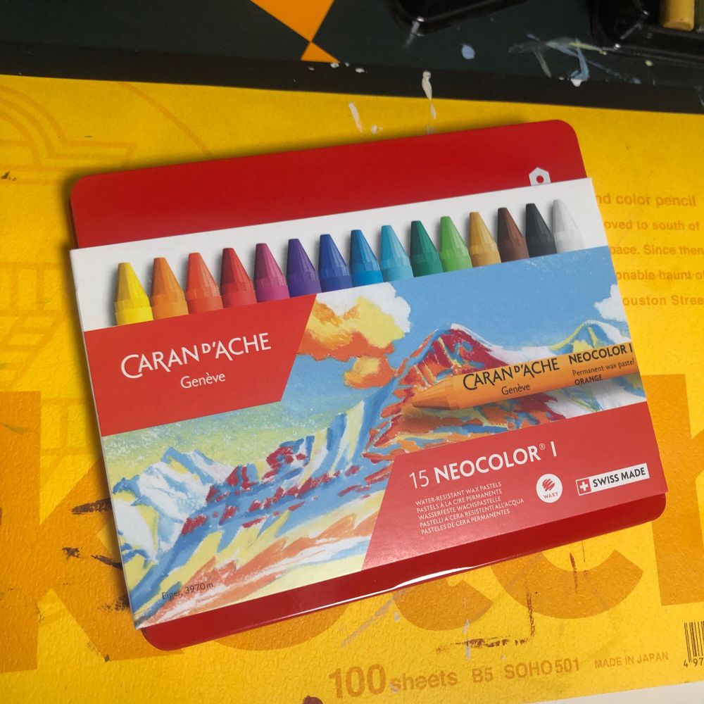 昨日落書き用に…とカランダッシュのネオカラー1買ったのだけど、絵の具と合わせ技でいい感じになりそう!楽しい😃
