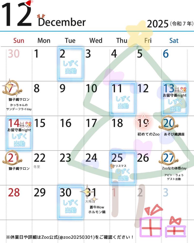 明日からは『初めてのZoo🔰』『あそび縄🪢講座』『獅子縄サロン+通常🈺』とイベントの週末✨