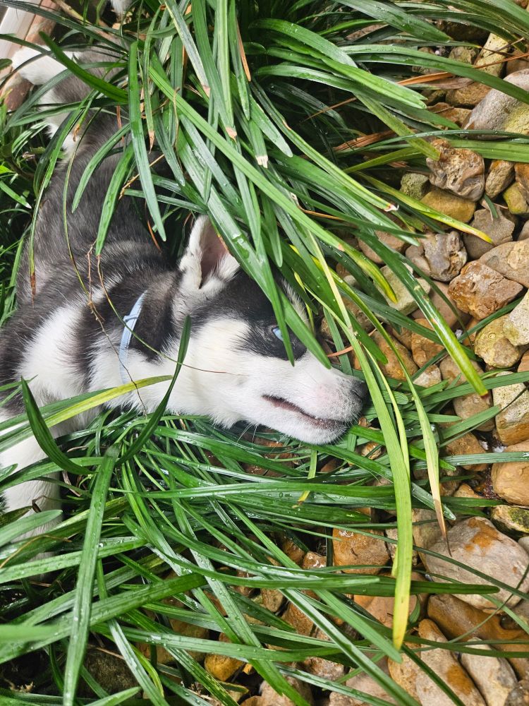 This puppy likes to grab leaves like that