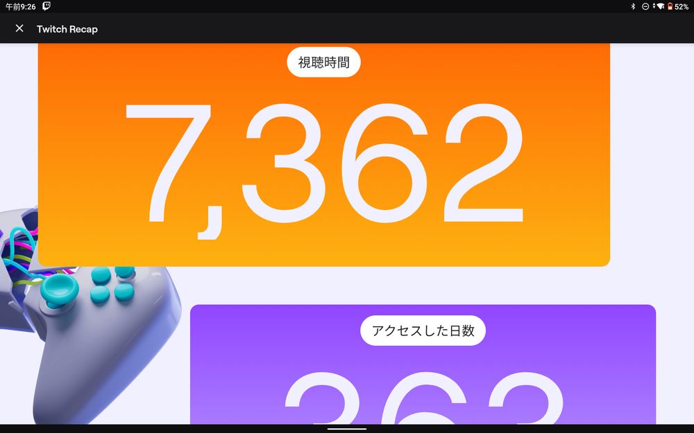 今年1年のTwitch利用時間よ