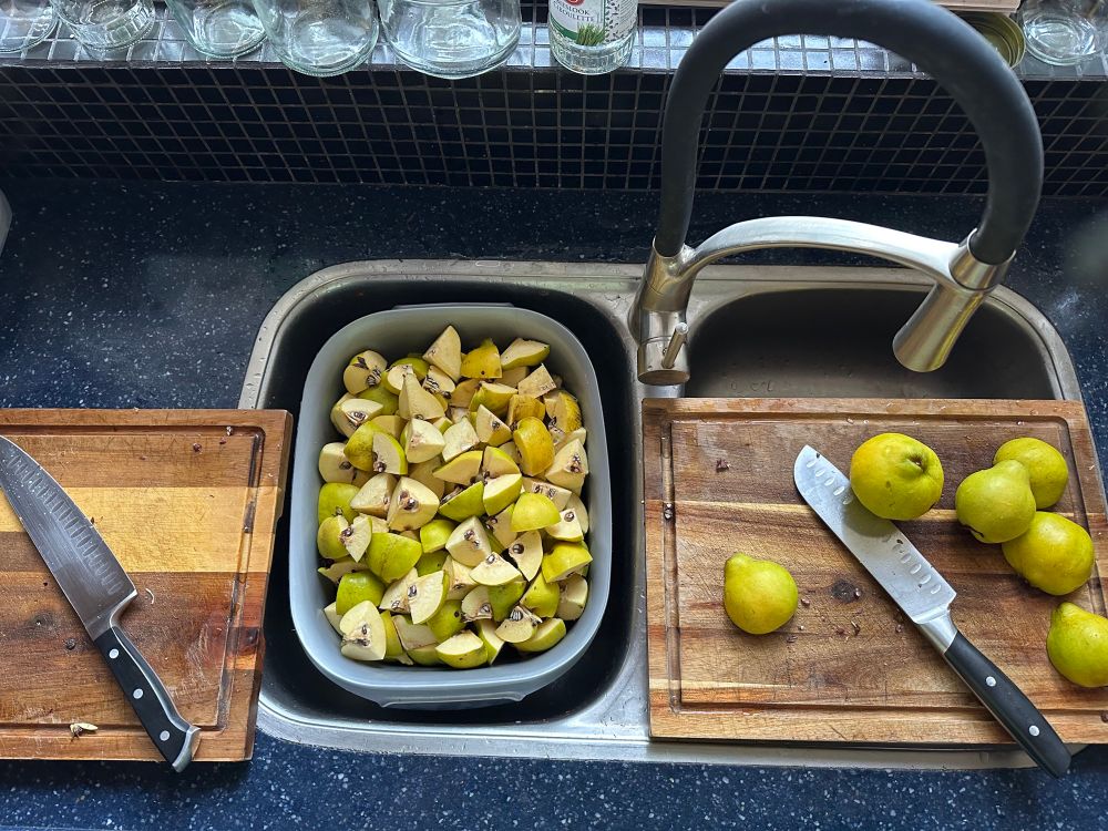 Kweepeer-gelei-maak-dag 🍐 Diverse versies: Moscatel + gember + kardemom voor wie van pittig houdt en Moscatel + steranijs + kaneel + kardemom, wat voller/warmer van smaak. #uiteigentuin
