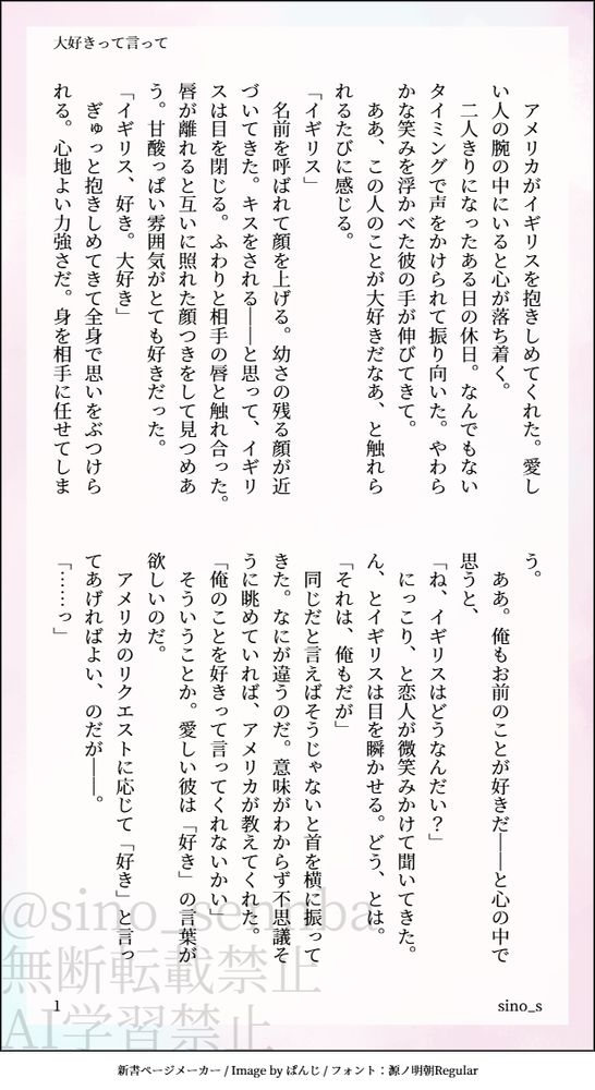 めりかに告白をされて逃げ回って返事を保留にしている間に彼への思いを自覚してしまって今さら好きだと言えなくなったイギの話です