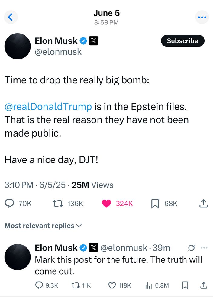 Well, as Elon requested, I marked his post for the future. Like I’ve said before, they’re all snakes, snitches, and punk-ass bitches.