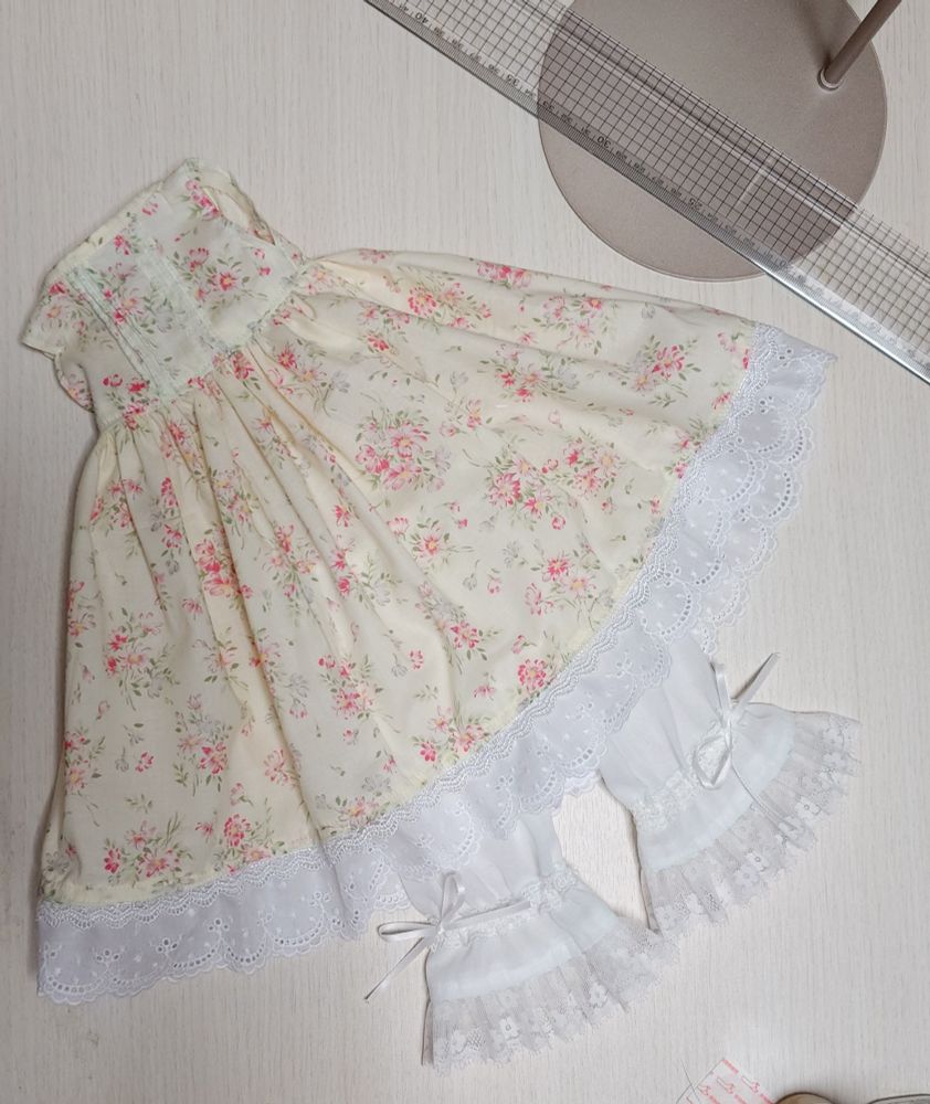 難しい…前に作ったピンタックワンピースに被せようと思ったら…丈が短くて…フリル追加…おかしいなぁ…はかったはずなのに(笑)
