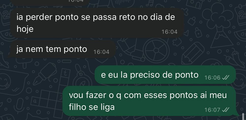 ainda existem homens com a conversa de: aiiin vai perder pontos cmg