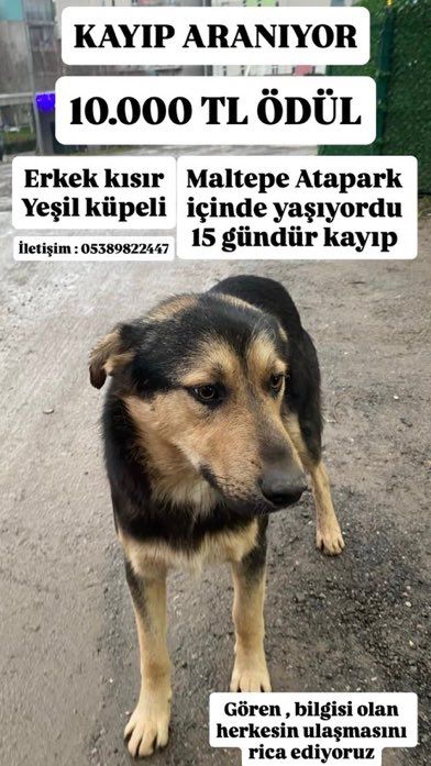 Hal büfe, otogar, çevre yolu lokasyonunda kaybolmuştur şu an farklı konumda olabilir. İsmi Tarçın ismine duyarlı üzerinde tasması yok bulan lütfen 0551 453 70 31 arasın.