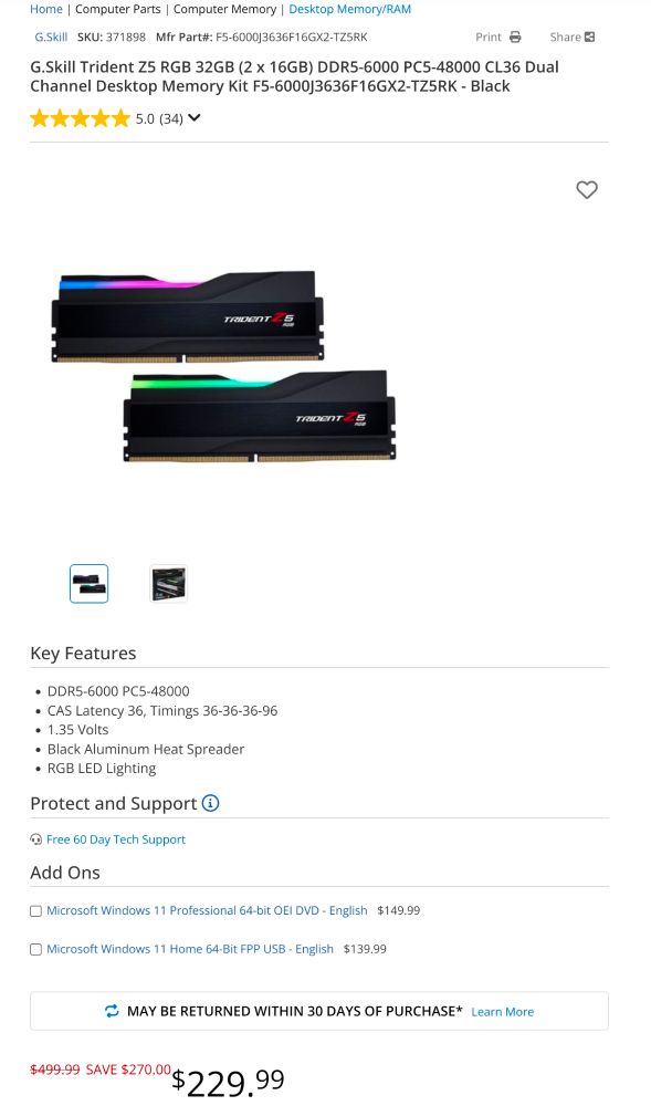 Now the same sticks of RAM are now at $499 at the same store (currently discounted rn at $229.99, but it's still expensive af)