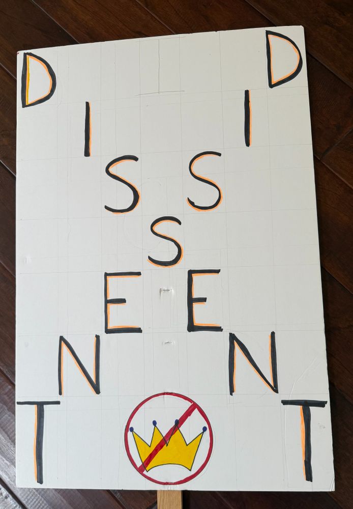 Some scenes from the NO KINGS protest about 20 miles north of downtown San Diego near Del Mar. The last two slides are the front and back of the sign I made. My first political demonstration ever.