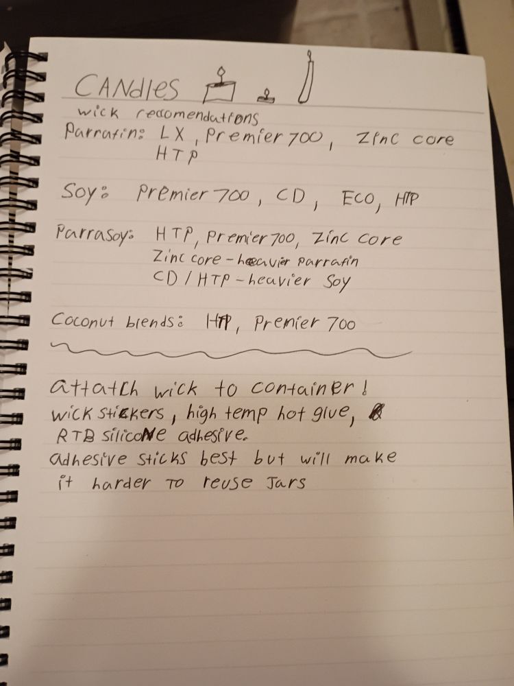 If you make candles feel free to judge my notes (if they're legible) I'm just trying to prepare myself for a hobby and fell into a hole