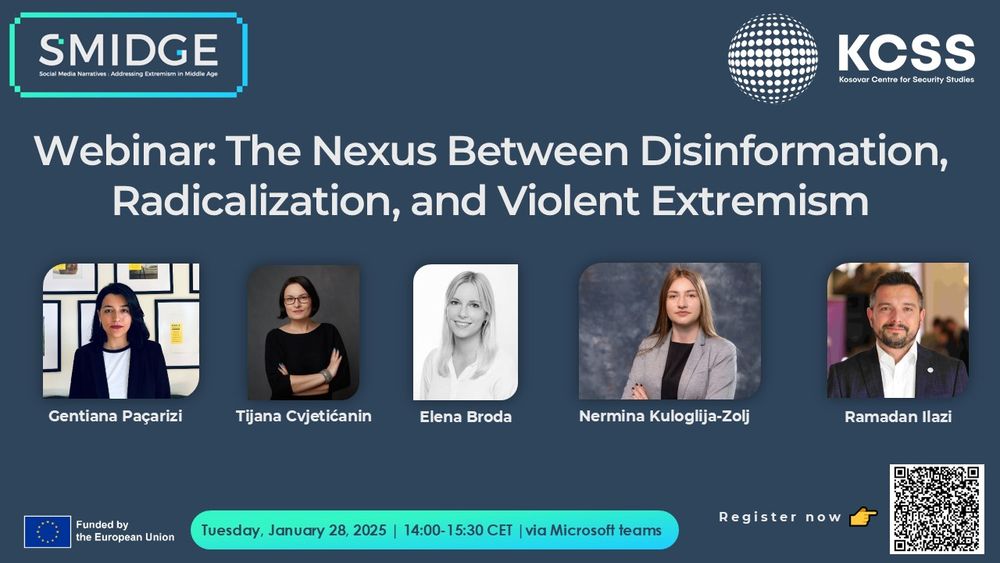 We'll explore how #Disinformation fuels #Radicalization and Violent Extremism with speakers Elena Broda, Nermina Kuloglija-Zolj, Tijana Cvjetićanin and Gentiana Paçarizi.
